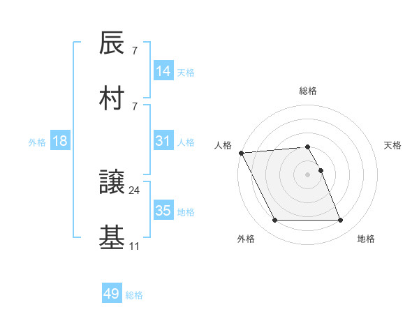 辰村 譲基さんの総格は49画の2点!