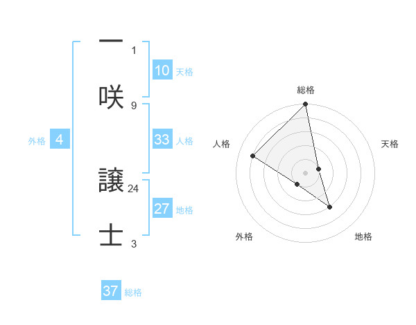 一咲 譲士さんの総格は37画の5点!