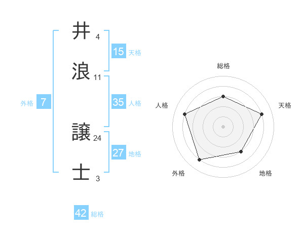 井浪 譲士さんの総格は42画の3点!