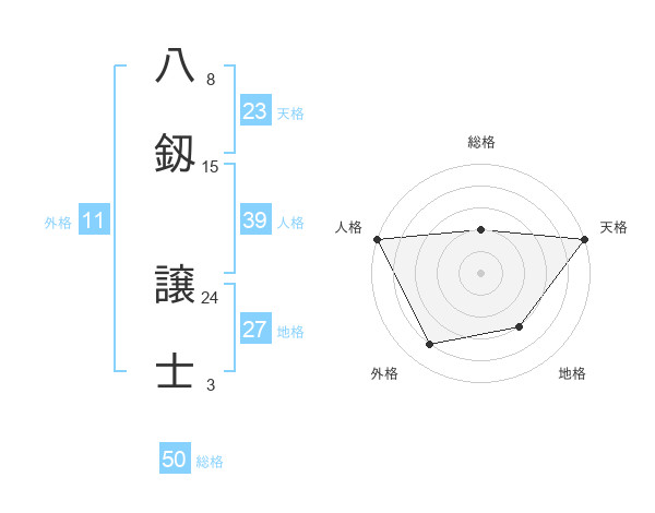 八釼 譲士さんの総格は50画の2点!