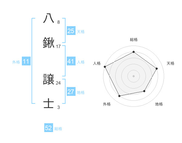 八鍬 譲士さんの総格は52画の4点!