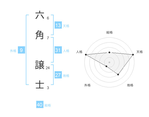 六角 譲士さんの天格は13画の5点!