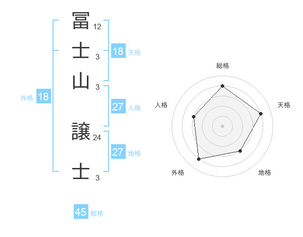 冨士山 譲士さんを姓名の画数から五運を鑑定