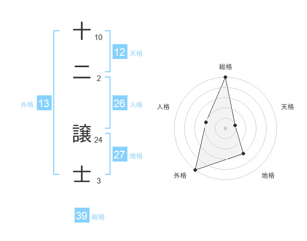 十二 譲士さんの総格は39画の5点!