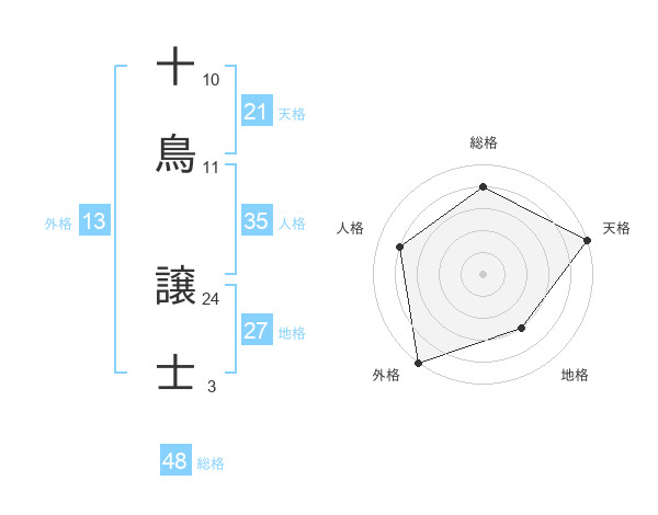十鳥 譲士さんの総格は48画の4点!
