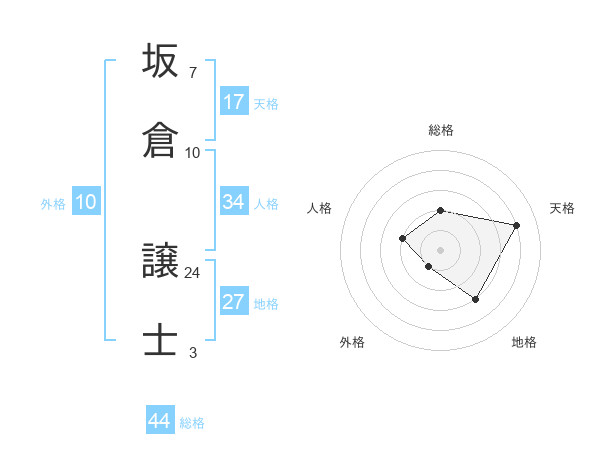 坂倉 譲士さんの天格は17画の4点!