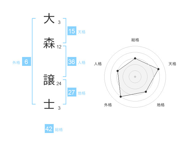 大森 譲士さんの総格は42画の3点!