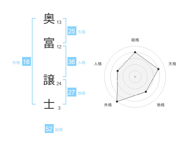 奥富 譲士さんの総格は52画の4点!