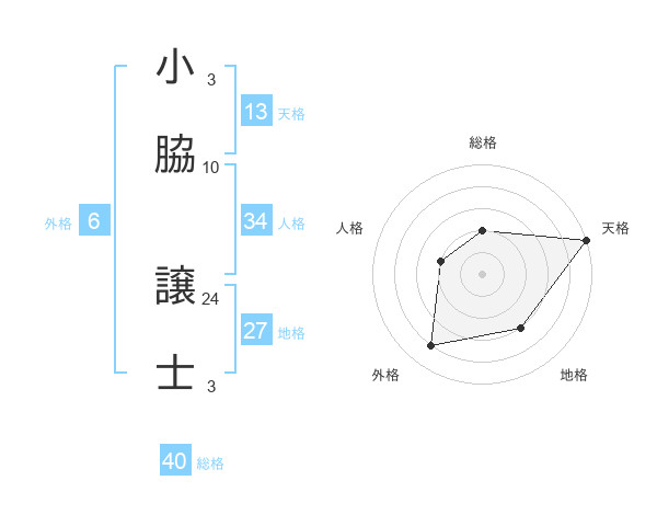 小脇 譲士さんの天格は13画の5点!