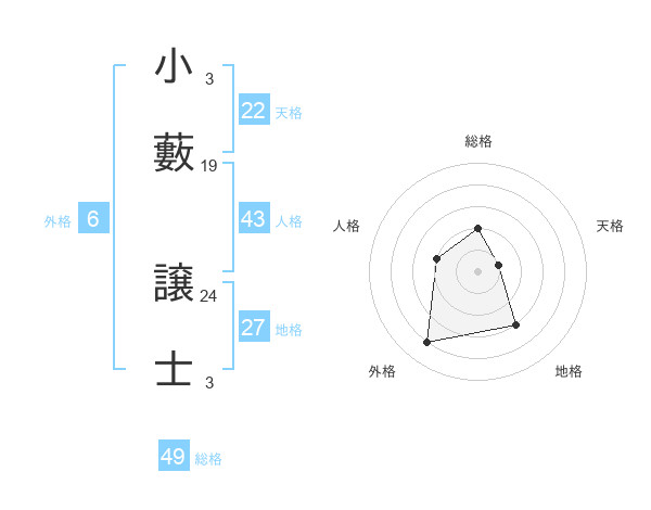 小藪 譲士さんの天格は22画の1点!