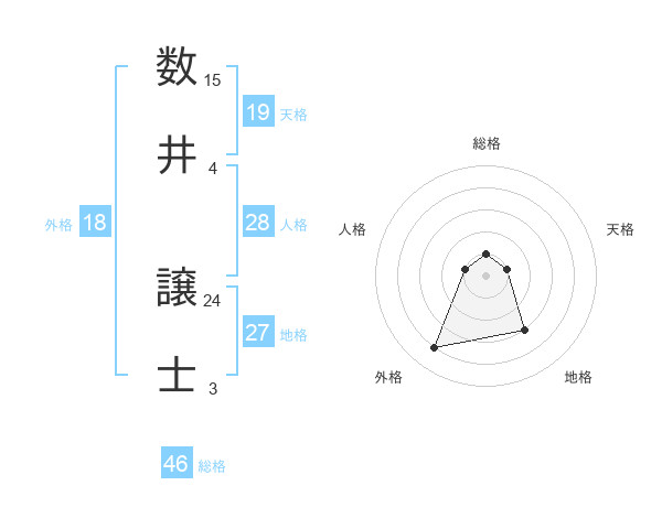 数井 譲士さんの総格は46画の1点!