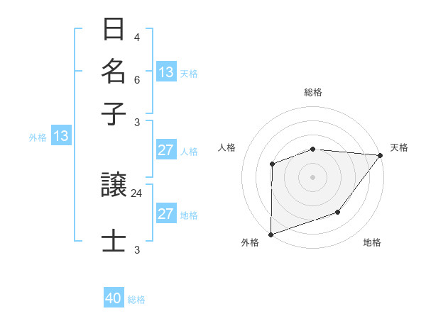 日名子 譲士さんの外格は13画の5点!