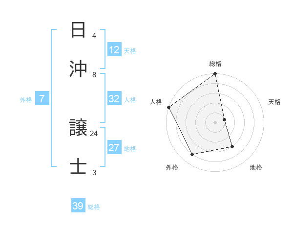 日沖 譲士さんの総格は39画の5点!