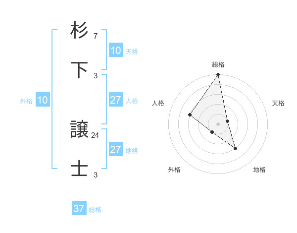 杉下 譲士さんの総格は37画の5点!