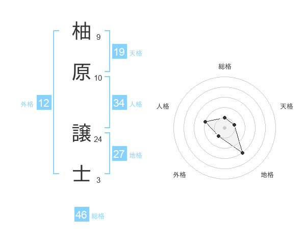 柚原 譲士さんの総格は46画の1点!