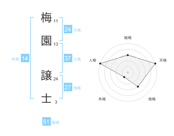 梅園 譲士さんの総格は51画の3点!