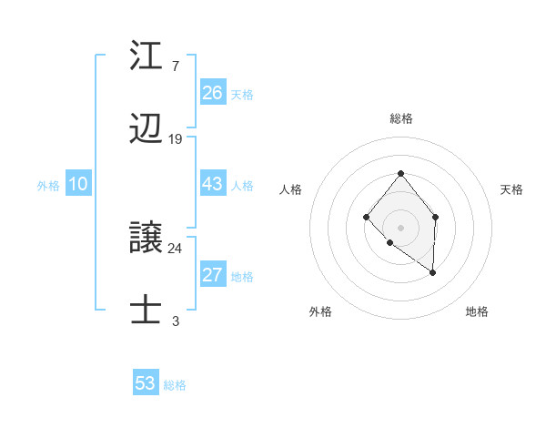 江辺 譲士さんの総格は53画の3点!