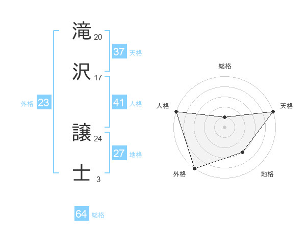 滝沢 譲士さんを姓名の画数から五運を鑑定