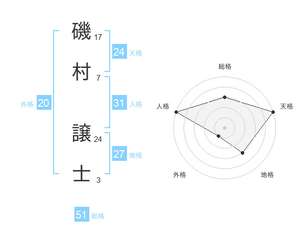 磯村 譲士さんの天格は24画の5点!