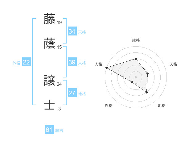 藤蔭 譲士さんを姓名の画数から五運を鑑定
