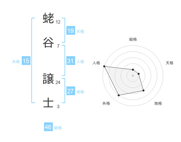 蛯谷 譲士さんの総格は46画の1点!