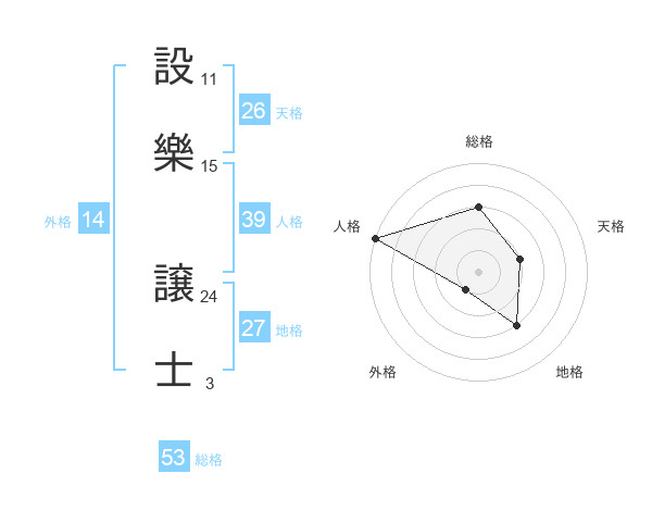 設樂 譲士さんを姓名の画数から五運を鑑定