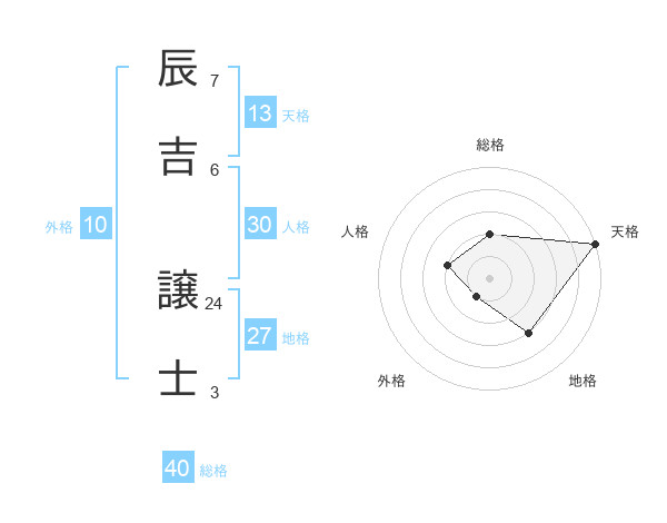 辰吉 譲士さんの天格は13画の5点!