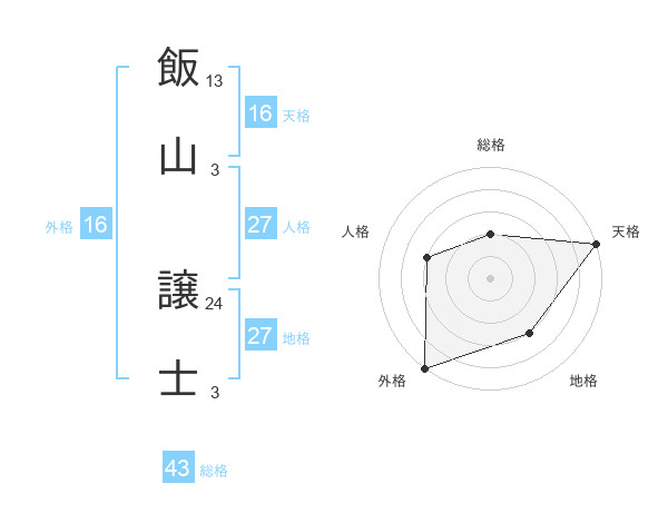 飯山 譲士さんの天格は16画の5点!