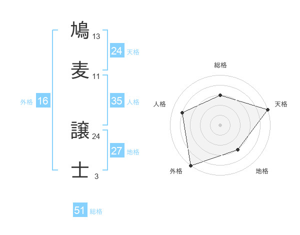 鳩麦 譲士さんの総格は51画の3点!