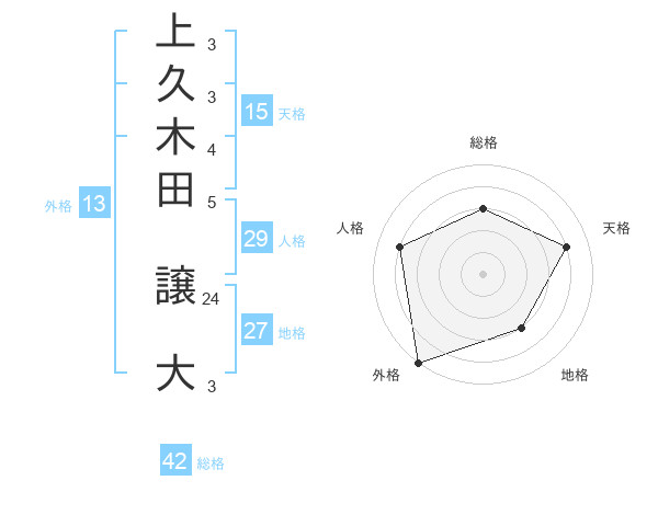 上久木田 譲大さんを姓名の画数から五運を鑑定