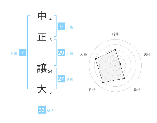 中正 譲大さんの総格は36画の3点!