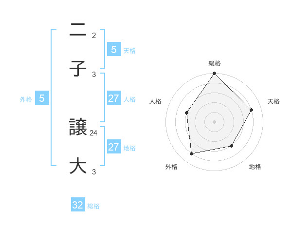 二子 譲大さんの総格は32画の5点!