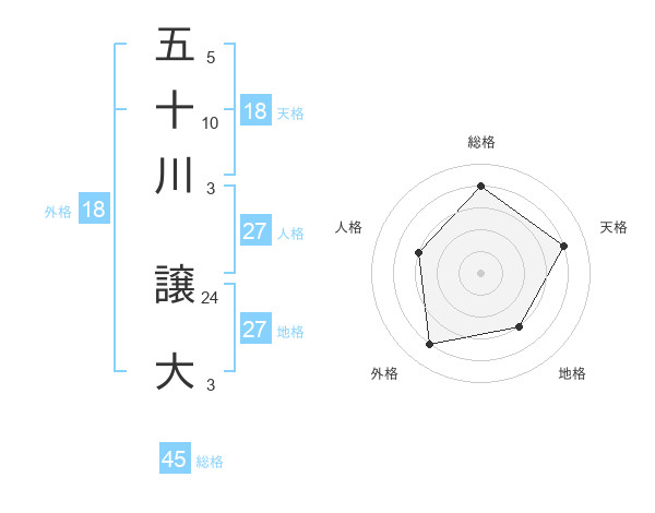 五十川 譲大さんを姓名の画数から五運を鑑定