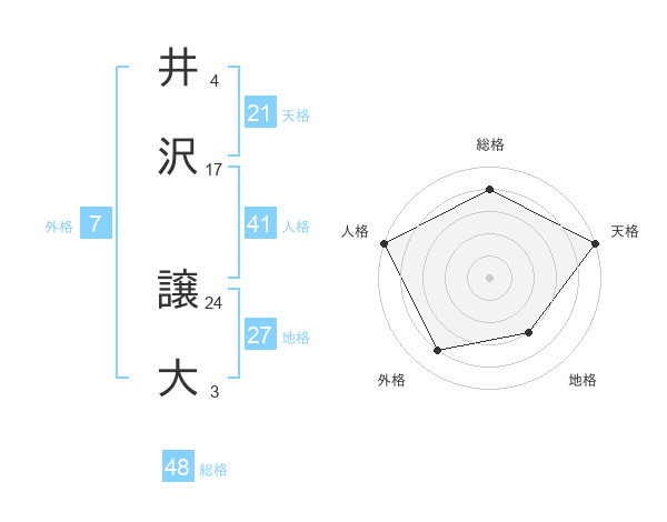 井沢 譲大さんの天格は21画の5点!