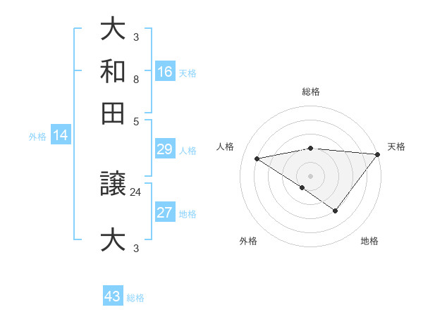 大和田 譲大さんを姓名の画数から五運を鑑定