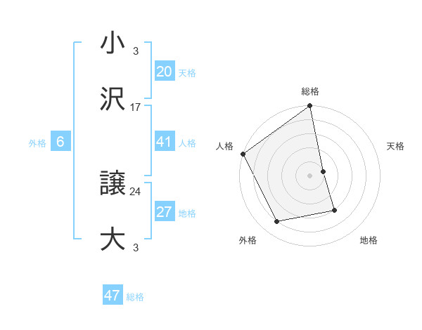 小沢 譲大さんの総格は47画の5点!