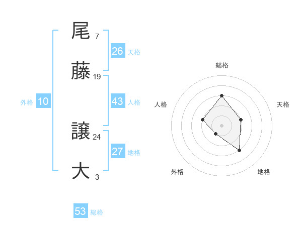 尾藤 譲大さんの総格は53画の3点!