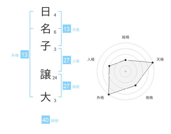 日名子 譲大さんの外格は13画の5点!