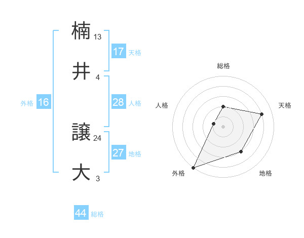 楠井 譲大さんを姓名の画数から五運を鑑定