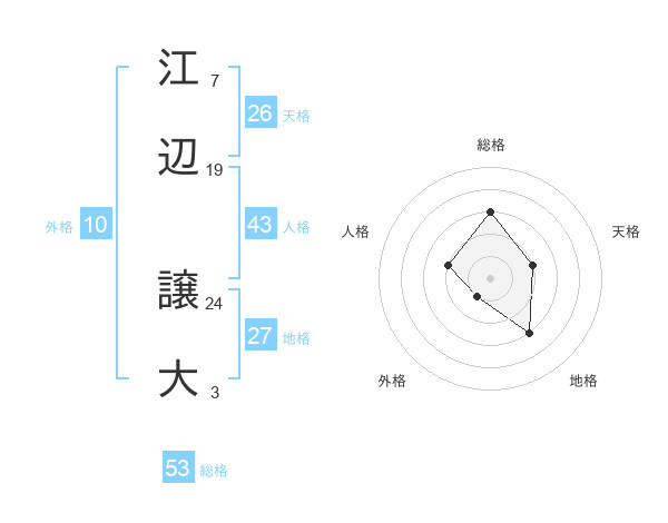 江辺 譲大さんの総格は53画の3点!