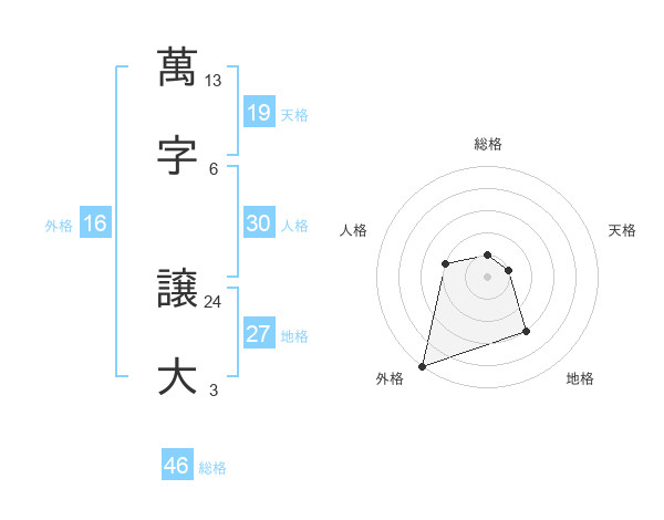 萬字 譲大さんの総格は46画の1点!
