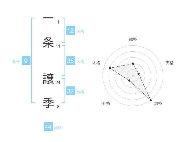一条 譲季さんの総格は44画の2点!