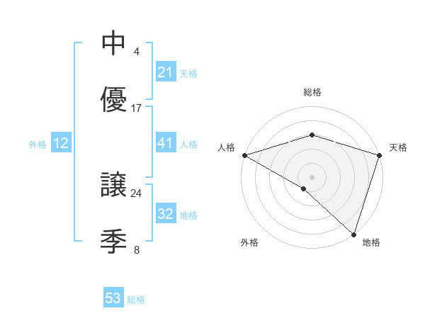 中優 譲季さんの総格は53画の3点!