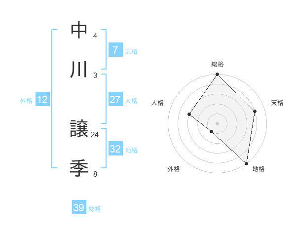 中川 譲季さんの総格は39画の5点!