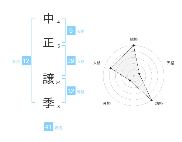 中正 譲季さんの総格は41画の5点!