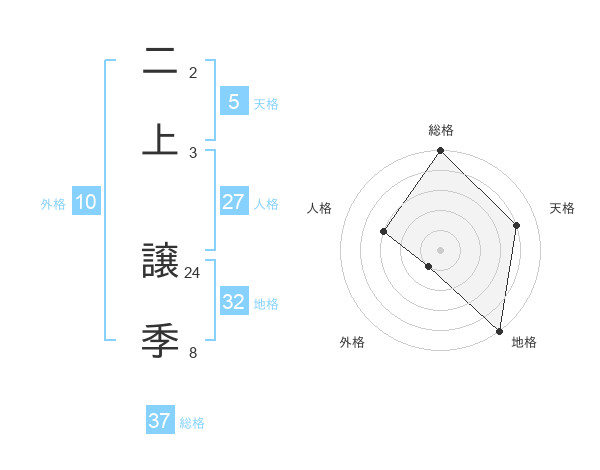 二上 譲季さんの総格は37画の5点!