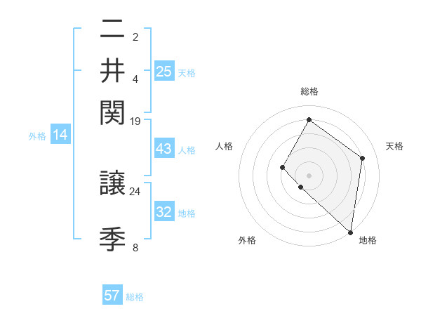 二井関 譲季さんの天格は25画の4点!