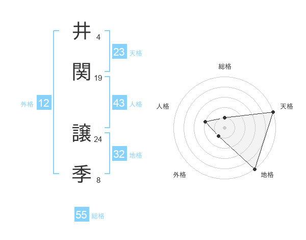 井関 譲季さんの総格は55画の1点!