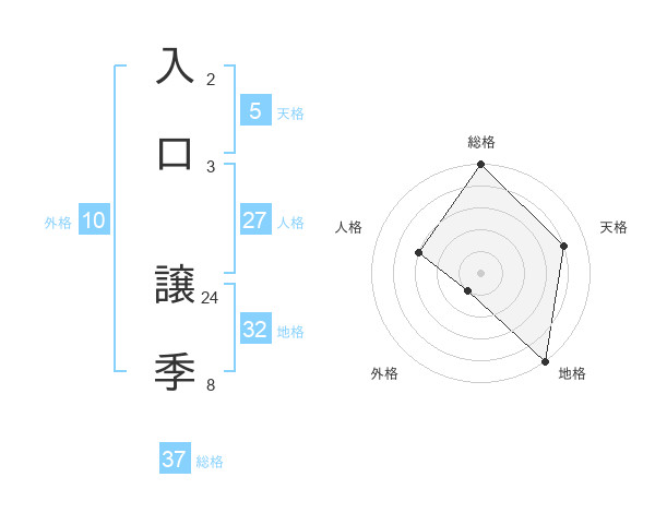 入口 譲季さんの総格は37画の5点!