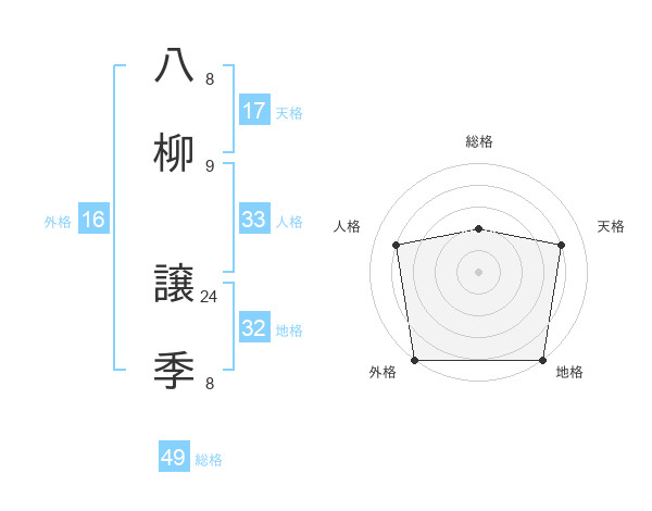 八柳 譲季さんの総格は49画の2点!